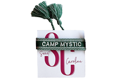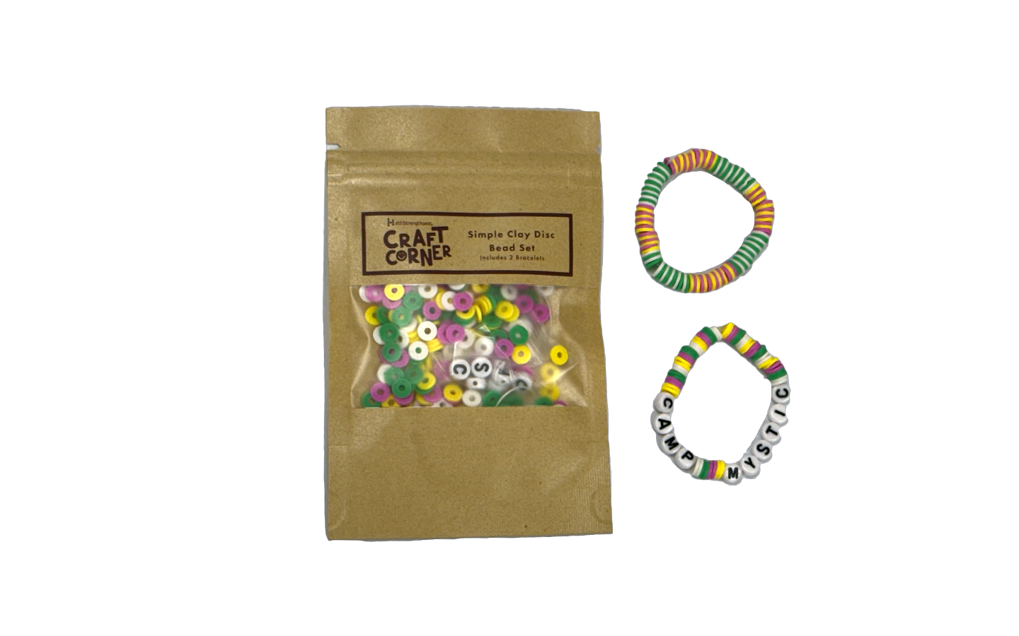 Bracelet kit with clay disc beads and “Camp Mystic” letters.