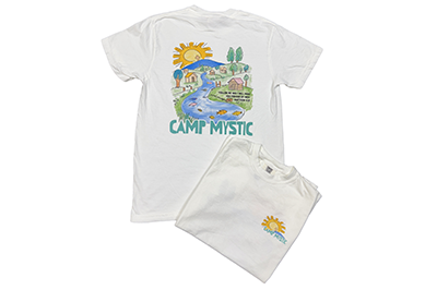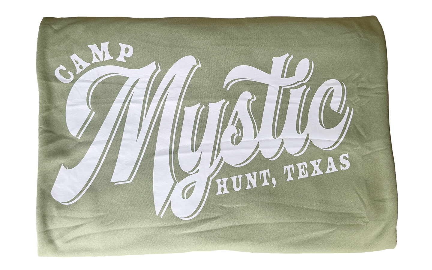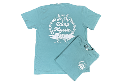 Comfort Color Seafoam shirt with floral Camp Mystic design.